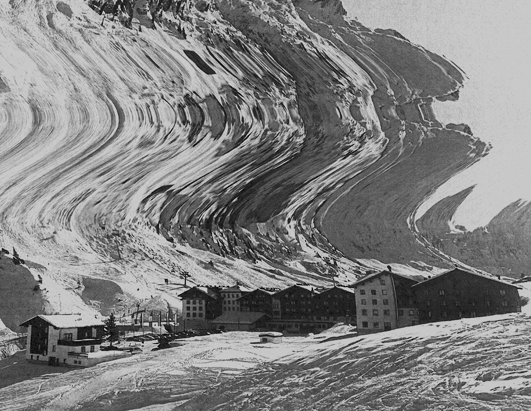 Lech Lustre is an experimental art series which combines manual and digital methods to twist and distort two different photographs taken in the Lech ski field in Austria.