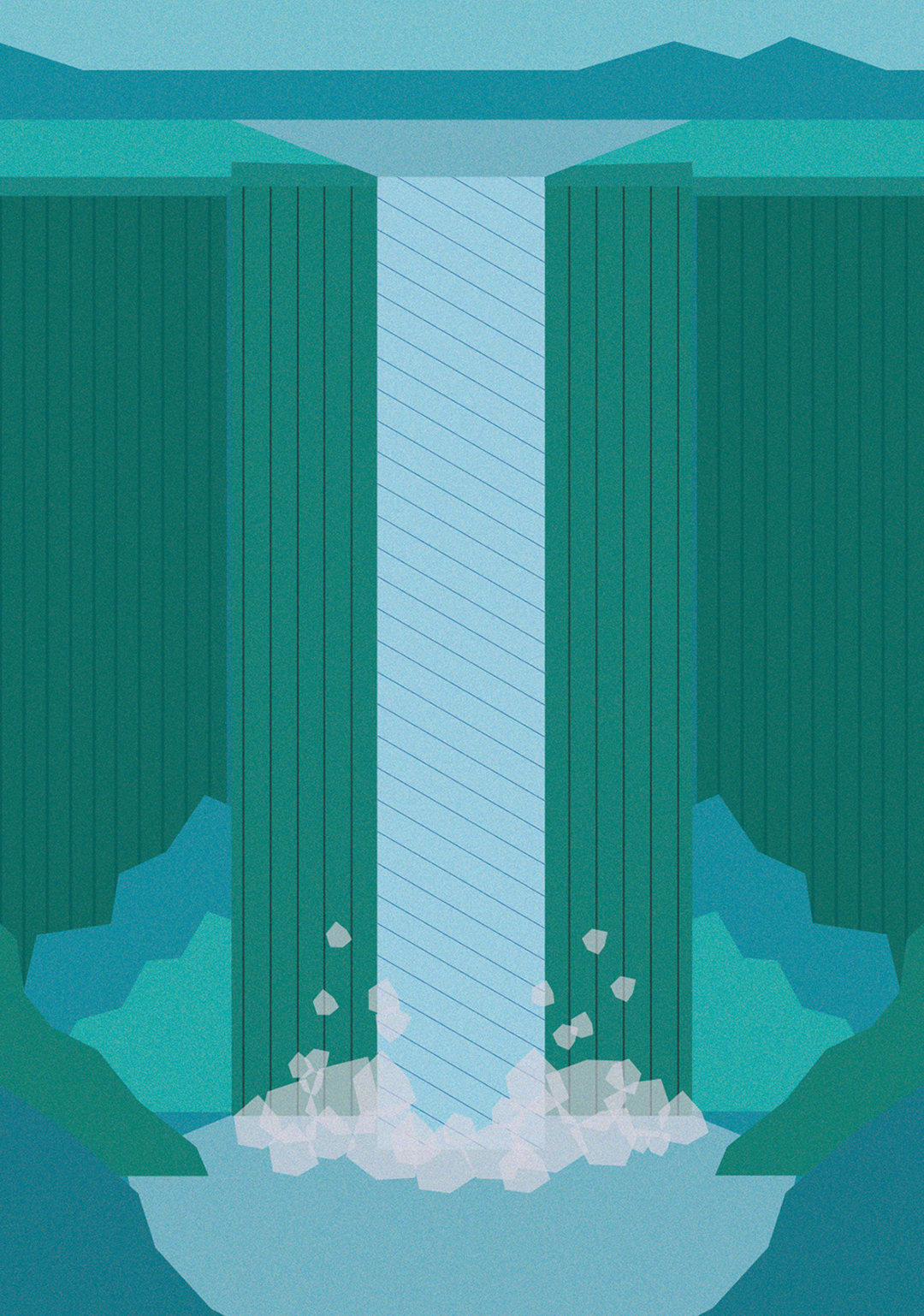 As part of a project during my studies at RMIT, I was tasked with creating an artwork to advertise travel and adventure. I had visited Ecuador a few years prior, seeing many towns, and even hiking a section of the Northern Andes. I was inspired by the vast natural landscape, in particular the waterfalls, to create a set of postcards, which would be freely distributed. Instead of in-your-face commands to visit the country, I created just an illustration of the scenery - a postcard to be kept and act as a reminder, instead of being tossed away.